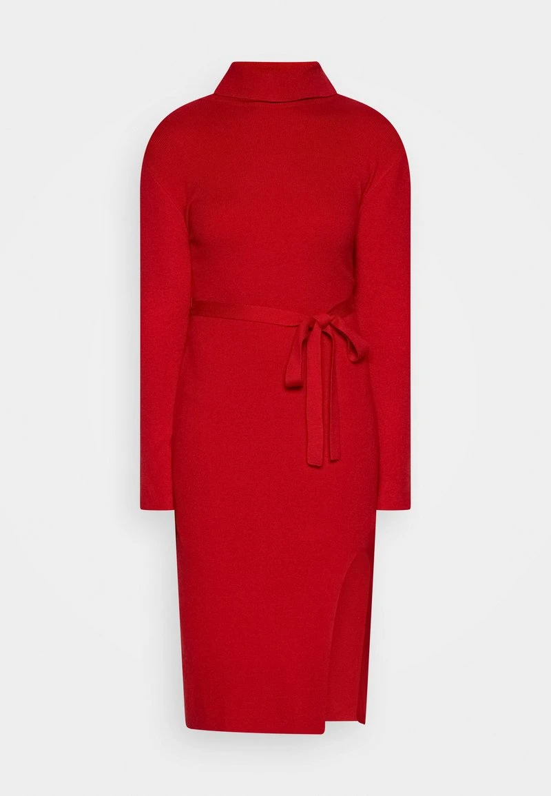 Anna Field ROLLKRAGEN RIPP MINI STRICKKLEID MIT GÜRTEL – Strickkleid – Red